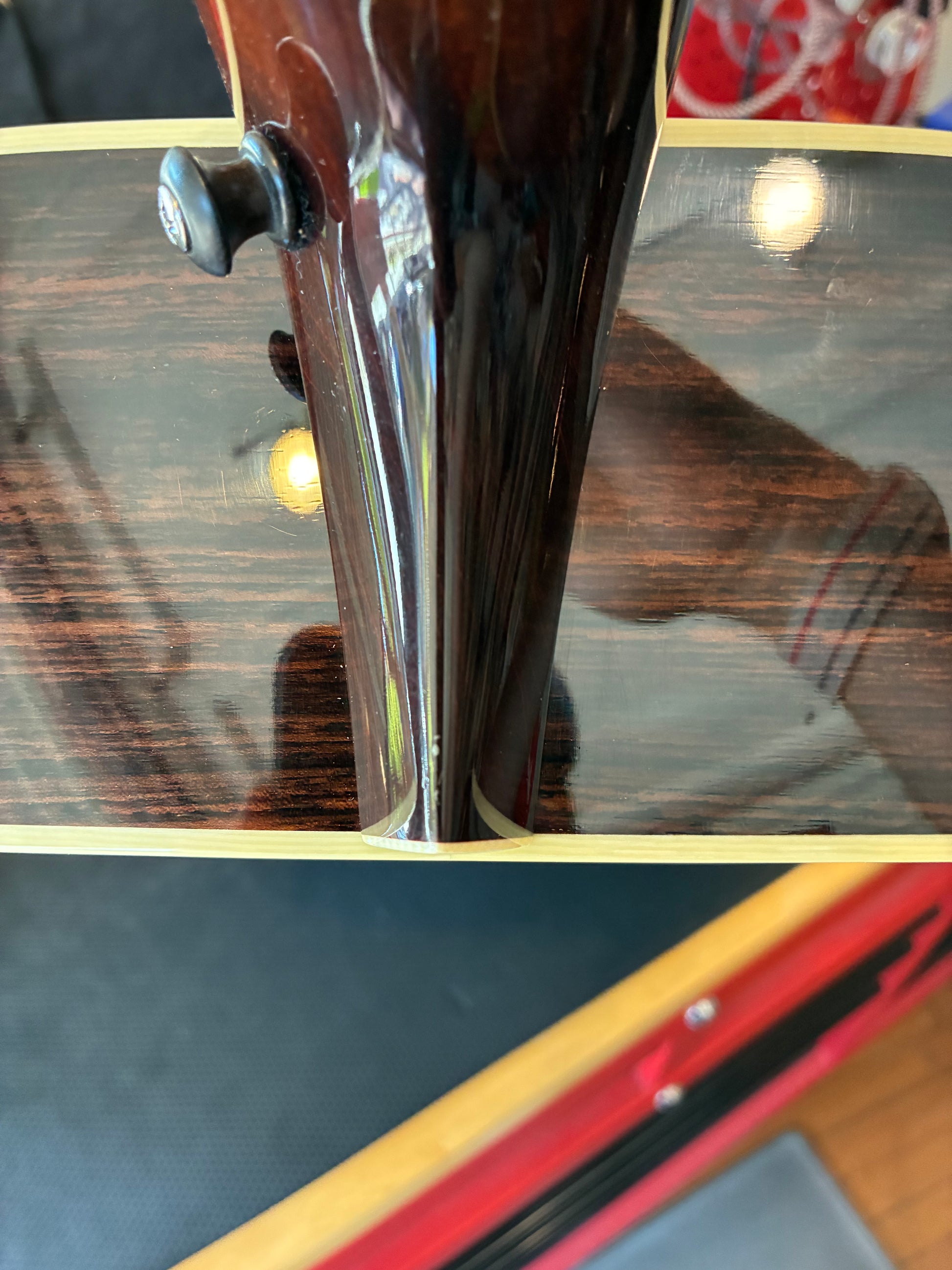 This guitar is in very good condition with a handful of difficult-to-spot cosmetic imperfections: surface swirling on the back and minor scratches in the finish on the back side, some pick wear on the finish near the pickguard that does not go through the finish, and has a small nick in the finish on the neck heel. Additionally, the guitar comes with the original case, has an LR Baggs Element VTC installed, and has a strap button installed. From the Collings website,