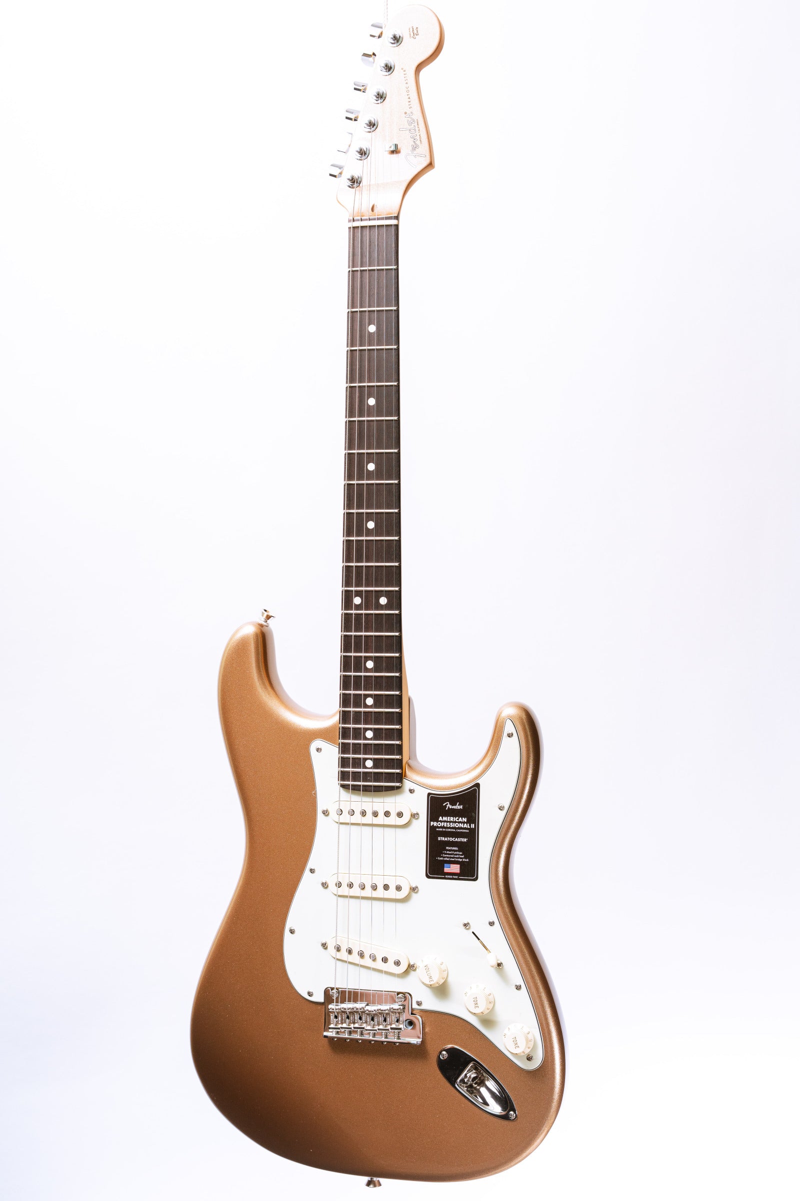 The American Pro II Stratocaster delivers instant familiarity and sonic versatility you'll feel and hear right away, with broad ranging improvements that add up to nothing less than a new standard for professional instruments."