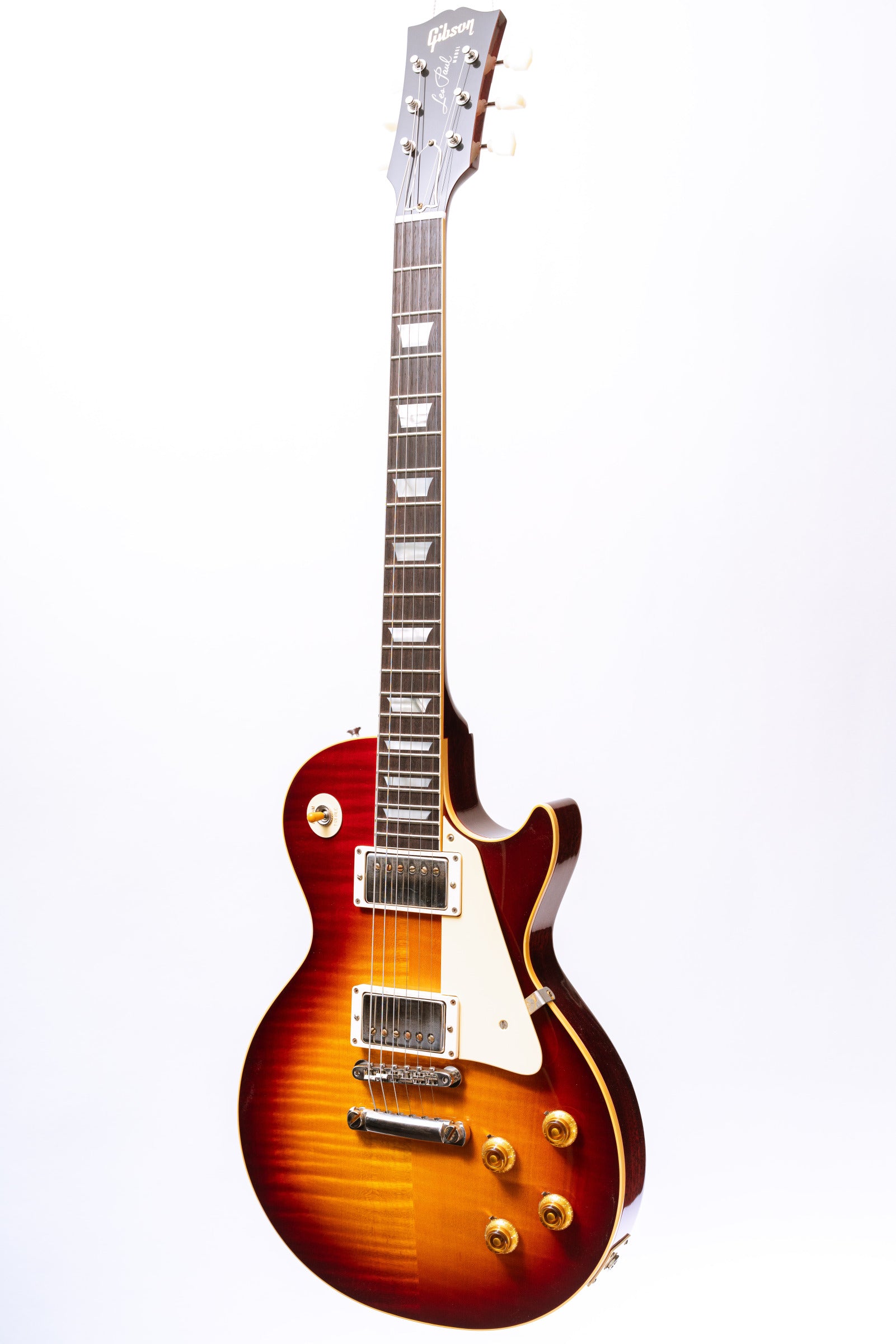 This ‘59 Les Paul Standard was (copied) heavily inspired by the Les Pauls featured in the famous The Beauty of the Burst book by author Yasuhiko Iwanade, page 74 to be more specific. The guitar features a AAA maple top with the limited “Beauty of the Burst” finish, has a ‘59 profile mahogany neck with a 12” radius Indian rosewood board, and has Gibson Custombucker pickups. If you have any questions, feel free to let us know!