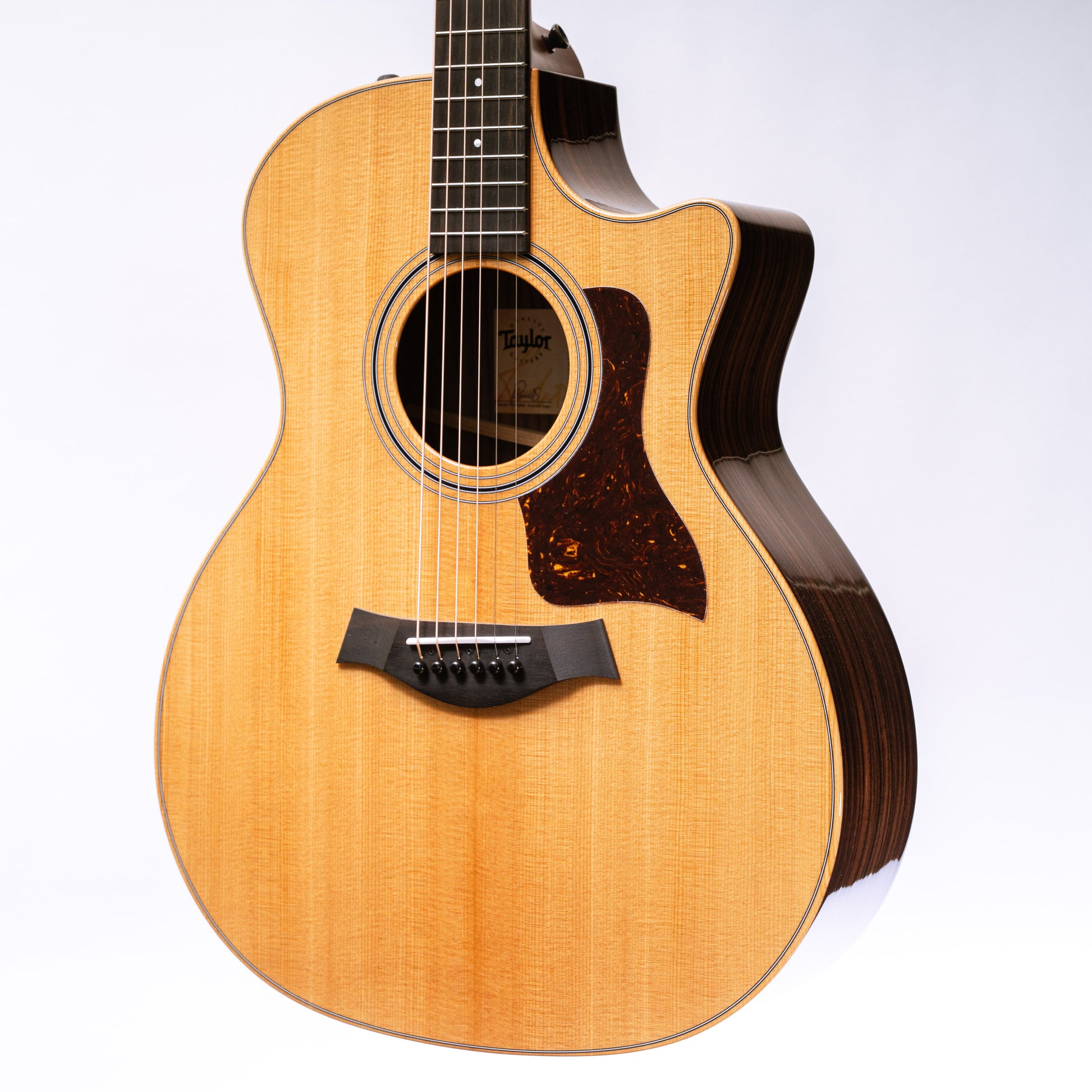 "Crafted with all-solid tonewoods, striking appointments and an easy-playing Taylor neck, the new 414ce Studio offers pro-quality tone and feel at an appealing price for the budget-minded player. This model features back and sides of solid Indian rosewood paired with a torrefied Sitka spruce top, voiced with our V-Class bracing. It adds up to a high-fidelity sound with clear, bell-like trebles, a robust low-end response and rich harmonic texture, plus an added dash of warmth from our proprietary roasting process for the spruce top. With the Grand Auditorium body shape, players can expect a highly adaptable tone that performs well across virtually all genres and playing styles, while the slender Taylor neck ensures relaxed fretting across the frequency spectrum. It includes ES2 electronics for rich, clear plugged-in sound and ships with a resilient structured gig bag for storage and transportation.